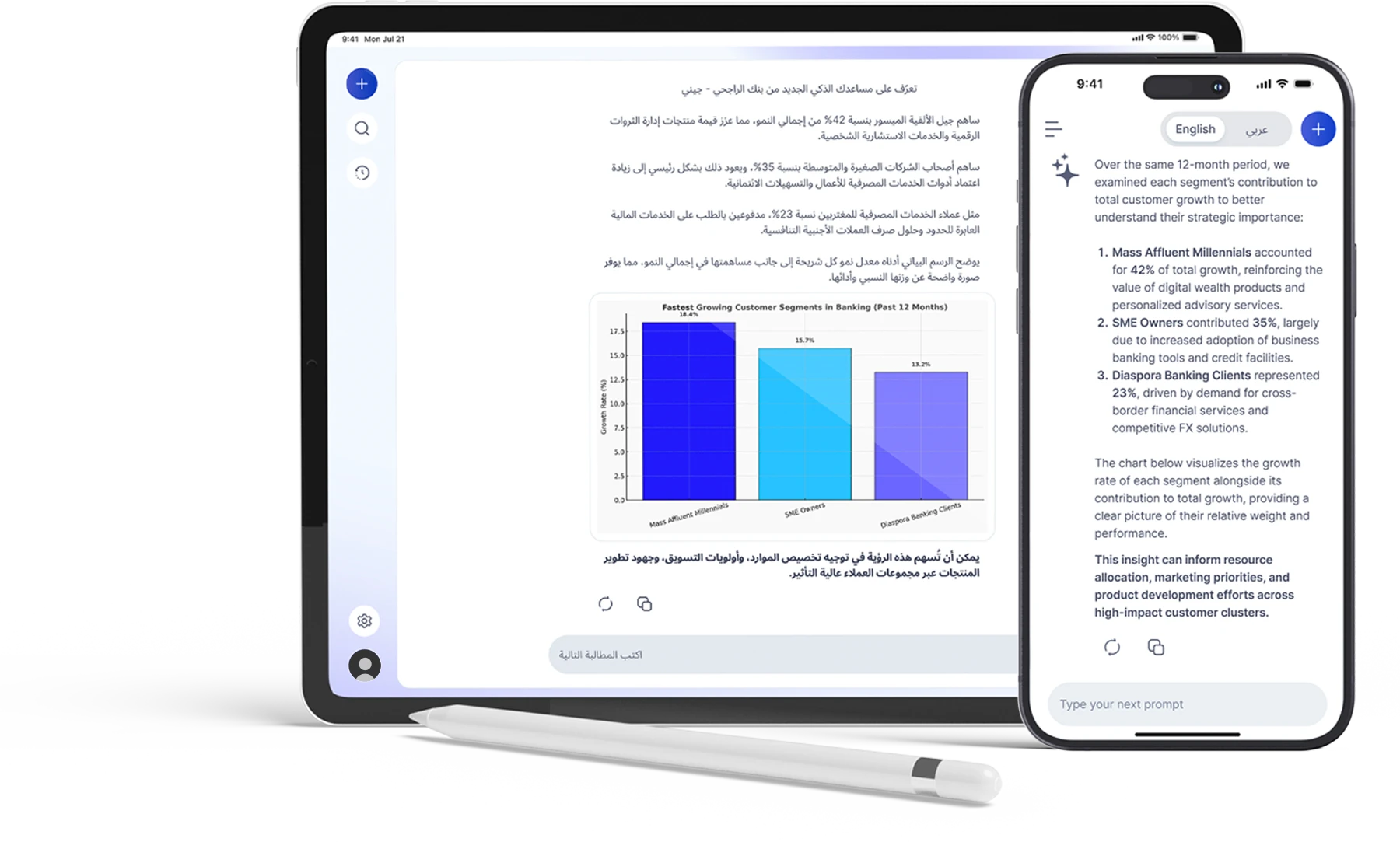 We designed and deployed an AI-powered Data Analysis Assistant that allows executives and analysts to interact with live banking data using natural language. This was achieved by connecting core banking systems, CRM data, and risk datasets into a single conversational AI layer — delivering instant insights, predictive forecasts, and explainable analytics.